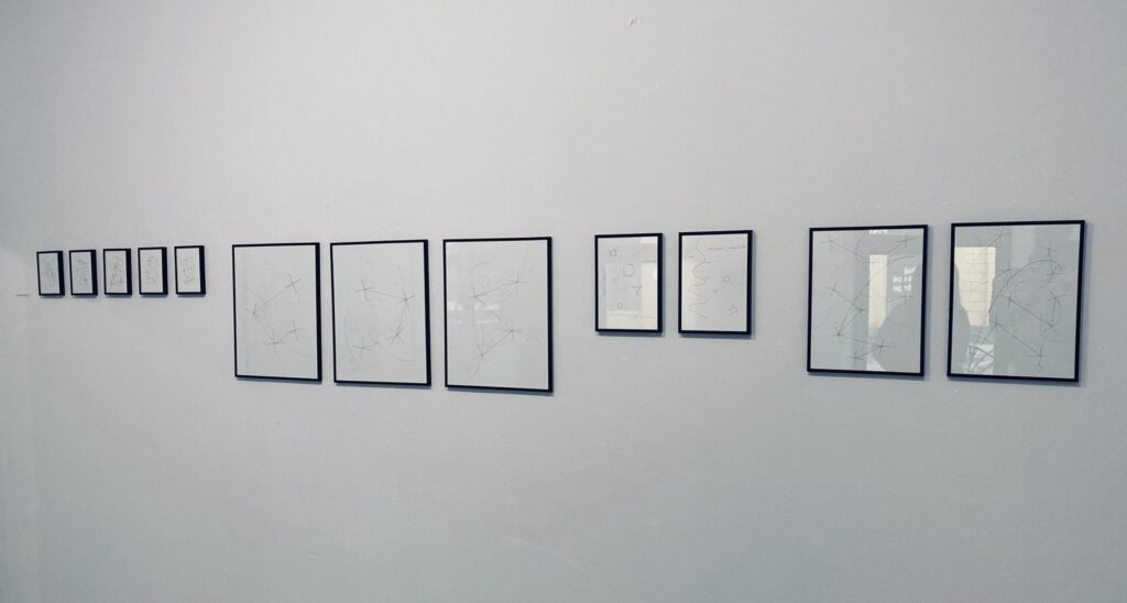In the present moment we decide the next step. How do we do that? Where does the information come from? Are we using the right information? After years of working with almost nothing more but a pencil and a piece of paper, I have come to the conclusion that the moment when the point of the pencil touches the paper is of pivotal importance. The question in drawing is: what movement will happen and why? I see repetition and impulses. Lines flying everywhere, trying to connect and join up to form images of this or that sort. What are they trying to convey, what does it mean? I have come to think about these questions as like stepping into the unknown. And then what?